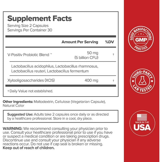 Formulación V-Positiv ProbioticBlend que incluye Probioticos, Prebioticos y Enzimas Digestivas!